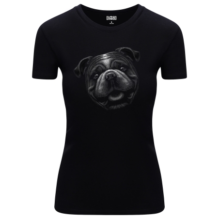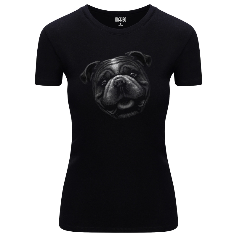 Koszulka z nadrukiem przedstawiającym portret buldoga – idealna dla miłośników psów oraz osób, które cenią nietuzinkowe wzory. Obrazek, pełen detali i wyrazistej formy, oddaje charakterystyczny wygląd tej rasy, przyciągając wzrok i budząc sympatię.