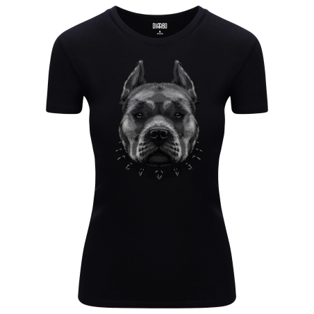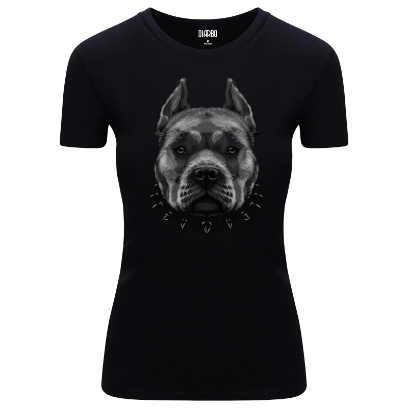 Koszulka z motywem głowy pitbulteriera przedstawia ten silny, odważny i lojalny gatunek psa w realistycznym ujęciu. Został on uchwycony w pełnej okazałości, z wyraźnie zarysowaną strukturą ciała, mocnymi rysami twarzy i ostrym wzrokiem. Czarne kolce na obroży dodają postaci drapieżnego charakteru, podkreślając siłę i pewność siebie, które są cechami pitbulteriera. Ta koszulka jest idealnym wyborem dla osób, które cenią sobie odważne i mocne akcenty w modzie.