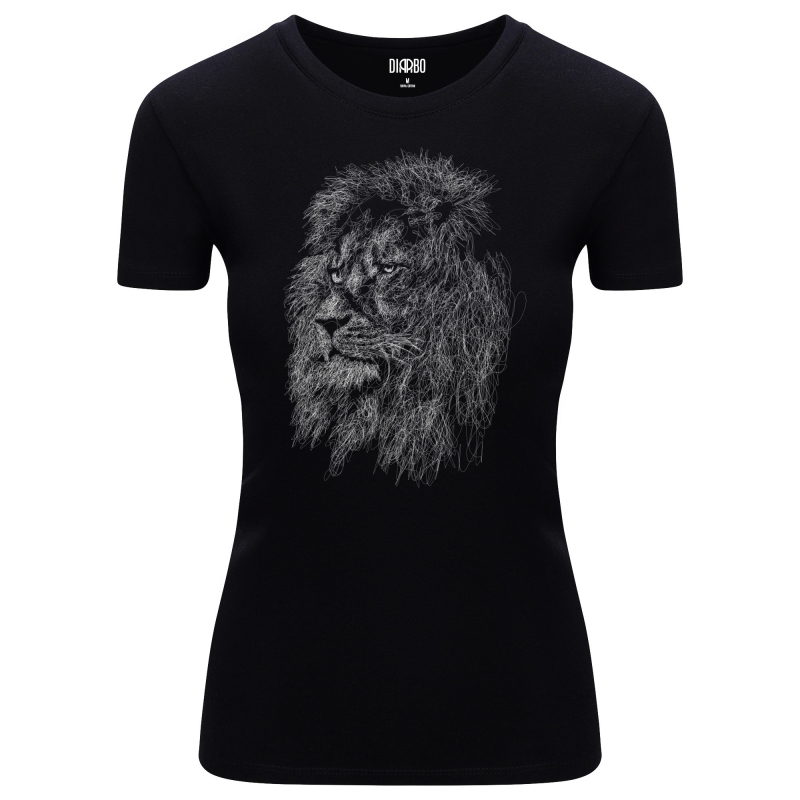 Koszulka z nadrukiem przedstawiającym portret lwa w stylu scribble. Artystyczny obraz lwa, stworzonego za pomocą dynamicznych linii, emanuje siłą i majestatem, uwypuklając jego królewski charakter.