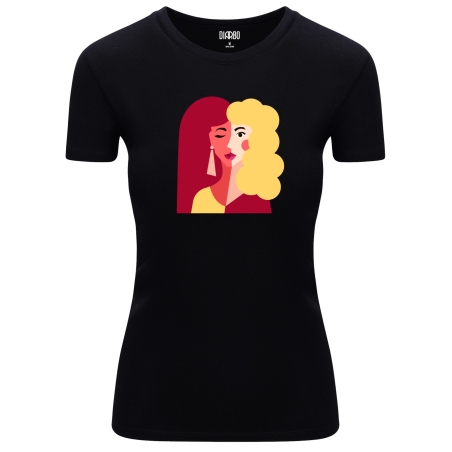 Koszulka z abstrakcyjnym portretem, przedstawiającym dwa różne profile kobiece w nowoczesnej, minimalistycznej formie, przyciąga wzrok swoją prostotą i kolorystyką. Zestawienie kontrastujących barw i geometrycznych kształtów dodaje jej artystycznego charakteru, tworząc oryginalny design, który z pewnością wyróżnia się w tłumie.