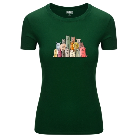 Koszulka z nadrukiem przedstawiającym rodzinkę psów w zabawnym, kreskówkowym stylu to idealna opcja dla miłośników czworonogów, którzy chcą dodać odrobinę radości i koloru do swojej garderoby. Na nadruku widzimy całą grupę psów w różnych kolorach, które uśmiechają się do świata, co daje lekki, przyjazny wygląd.