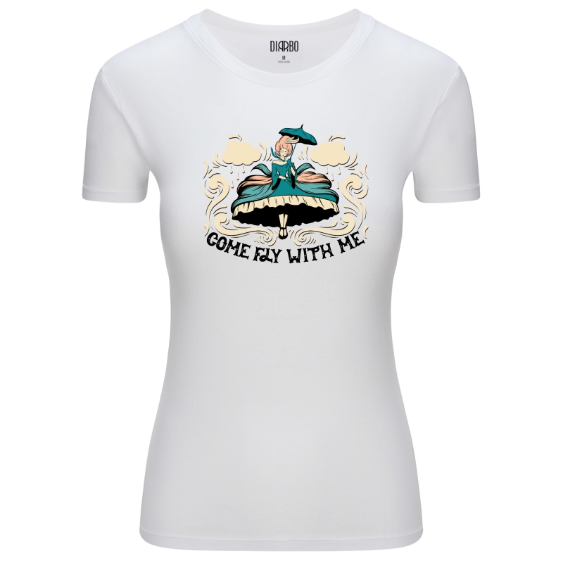 Koszulka „Come Fly With Me” to wyjątkowa propozycja dla kobiet, które cenią oryginalność i nutę fantazji w codziennym stylu. Urocza ilustracja przedstawia unoszącą się w powietrzu postać w stylizowanej sukni, otoczoną chmurkami i dynamicznymi wirami. Całość dopełnia napis „Come Fly With Me”, który dodaje lekkości i pozytywnej energii. Idealna na wiosenne spacery, kreatywne spotkania i wszystkie momenty, kiedy chcesz poczuć się swobodnie i wyjątkowo.