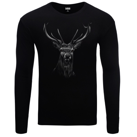 Koszulka "Deer's Portrait" – elegancki i subtelny design dla miłośników natury i majestatycznych zwierząt. Na tle koszulki znajduje się realistyczny, biało-szary portret jelenia z imponującym porożem. Nadruk oddaje piękno i dostojność tego zwierzęcia, które symbolizuje wolność, siłę i spokój. Ta koszulka jest idealna dla osób ceniących minimalizm i przyrodnicze motywy.