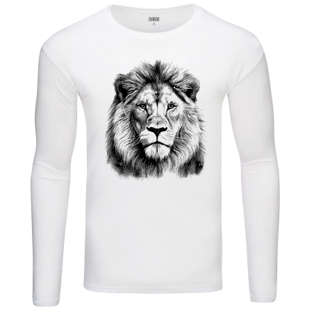 Koszulka z rysunkiem przedstawiającym portret lwa – idealna dla osób, które szukają klasycznego, ale jednocześnie wyrazistego wzoru. Na froncie znajduje się szczegółowy szkic lwa, który nadaje mu majestatyczny wygląd i sprawia, że staje się to elementem pełnym charakteru.