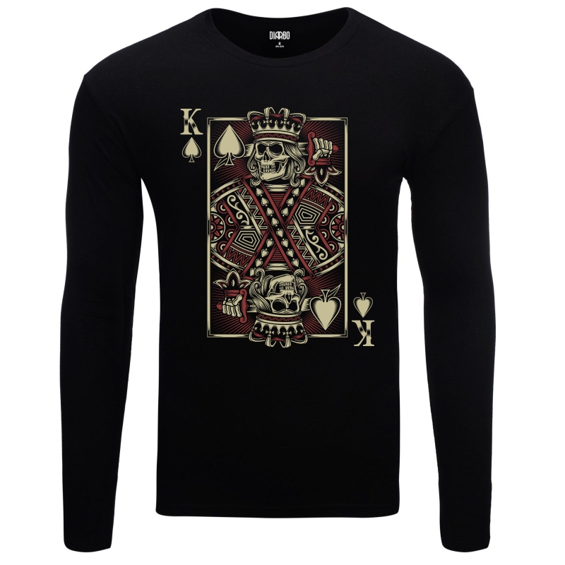 Koszulka z nadrukiem przedstawiającym kartę "King of Spades" w stylu z czasów starożytnych, gdzie na karcie widnieje czaszka w koronie, która nadaje całości gotycki i nieco mroczny charakter. To świetny wybór dla osób, które chcą wyróżniać się oryginalnym stylem z nutą tajemniczości i elegancji.