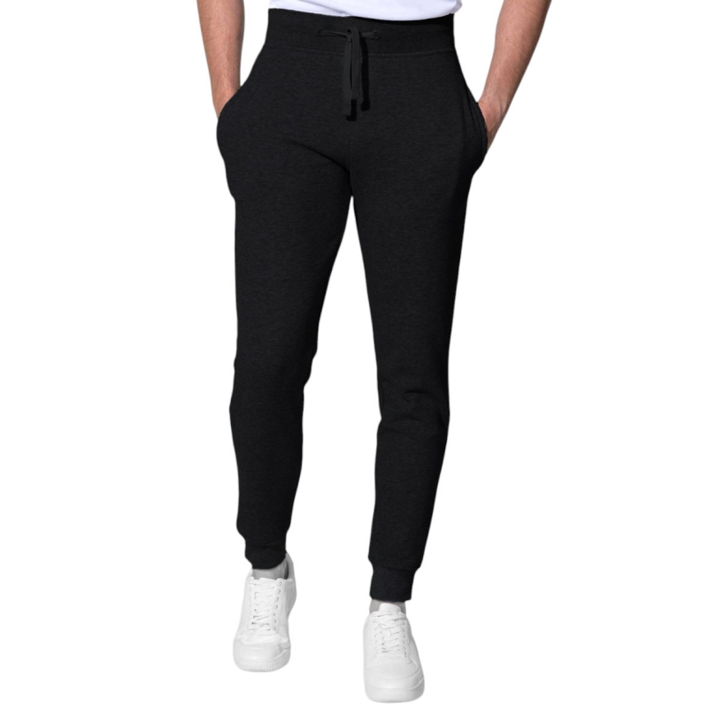 Te męskie spodnie typu jogger to idealne połączenie wygody i nowoczesnego designu. Wykonane z miękkiej frotte francuskiej (gładki materiał na zewnętrz oraz pętelka wewnątrz) zapewniają przyjemne uczucie na skórze oraz trwałość. Dzięki elastycznej talii ze ściągaczem w dopasowanym kolorze i regulowanym sznurkiem, świetnie dopasowują się do sylwetki, gwarantując maksymalny komfort noszenia.