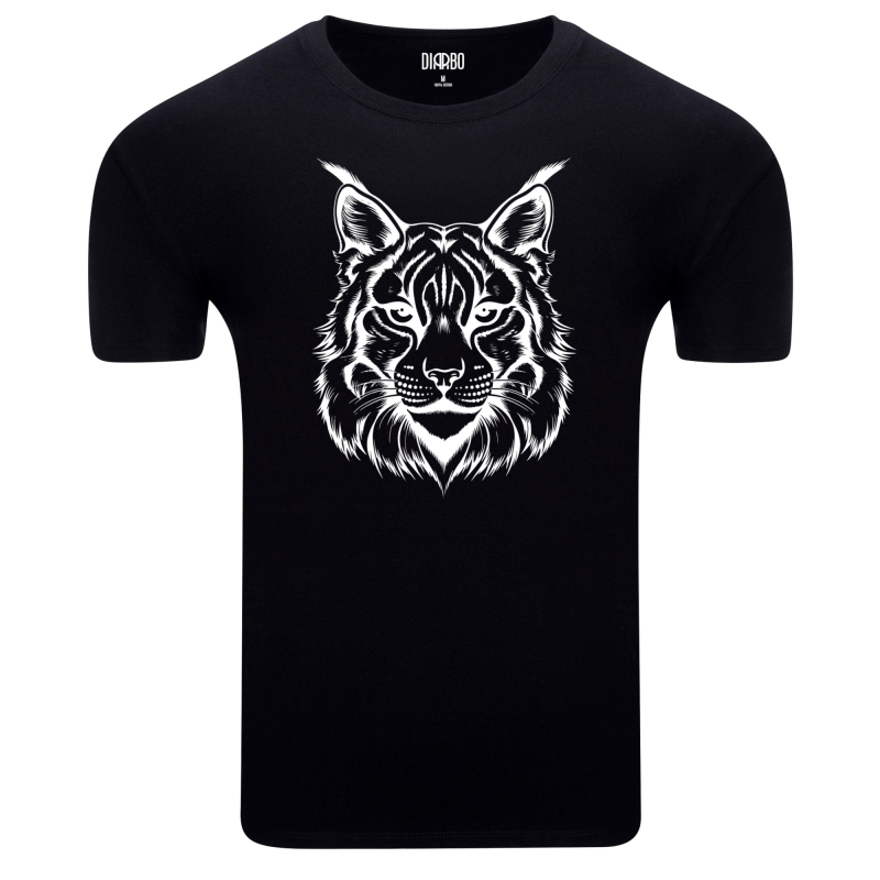 Koszulka z efektowną grafiką przedstawiającą głowę rysia w stylu graficznym o mocnym kontraście. Wzór podkreśla dziką naturę tego tajemniczego drapieżnika, uwydatniając jego ostre rysy, hipnotyzujące spojrzenie i charakterystyczne uszy. Minimalistyczna, ale jednocześnie wyrazista ilustracja sprawia, że t-shirt jest doskonałym wyborem dla miłośników natury i zwierzęcego majestatu.