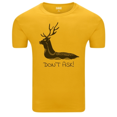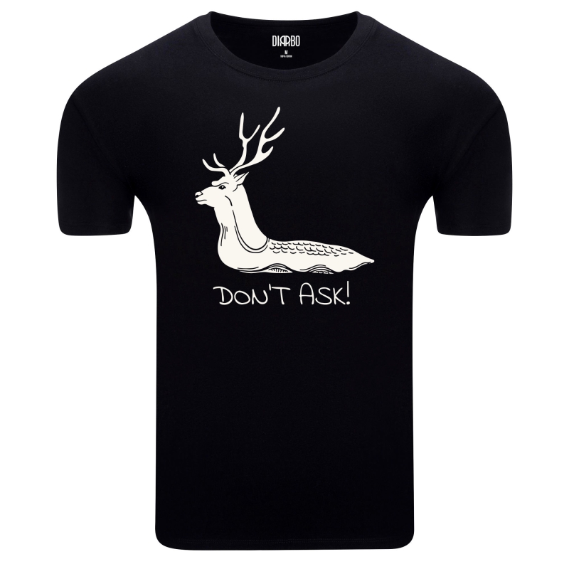 Poznaj naszą koszulkę „Don't Ask!” – idealną propozycję dla tych, którzy cenią sobie humor, tajemniczość i unikalny styl. Ta koszulka prezentuje intrygujący wzór jelenia, który w nietypowy sposób zdaje się łączyć ze ślimakiem, a całość opatrzona jest lakonicznym, ale wymownym napisem „DON'T ASK!” (Nie pytaj!). To doskonały wybór dla osób, które lubią wywoływać uśmiech i intrygować, podkreślając swoją niezależność i poczucie humoru. Świetny prezent dla miłośników zwierząt, abstrakcyjnej sztuki czy po prostu dla kogoś, kto lubi koszulki z "drugim dnem".