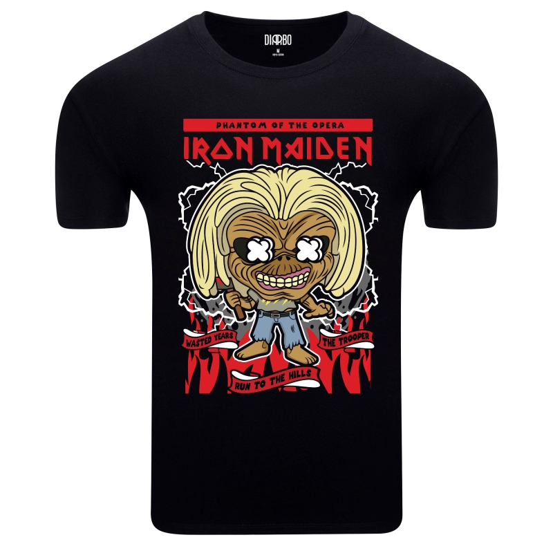 Ta koszulka to prawdziwa gratka dla fanów legendarnego zespołu heavy metalowego, Iron Maiden. Prezentuje unikalny design z wizerunkiem kultowej maskotki zespołu – Eddiego, w kreskówkowym stylu, otoczonego tytułami znanych utworów takich jak "The Trooper", "Run to the Hills" czy "Wasted Years". Całość utrzymana jest w czarno-czerwonej tonacji, z dynamicznymi elementami graficznymi, co nadaje koszulce rockowy i wyrazisty wygląd. To idealny wybór dla miłośników ciężkich brzmień i klasyki metalu, którzy cenią sobie styl i jakość.