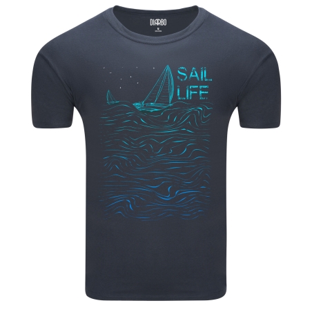 Ta koszulka to idealny wybór dla każdego, kto kocha morze, żeglarstwo i swobodę, jaką daje wiatr w żaglach. Prezentuje unikalny design z minimalistyczną grafiką żaglówki płynącej po wzburzonych falach, oświetlonej gwiazdami, z napisem "SAIL LIFE" w odcieniach błękitu. To idealny wybór dla miłośników przygód, podróży i morskiej estetyki.