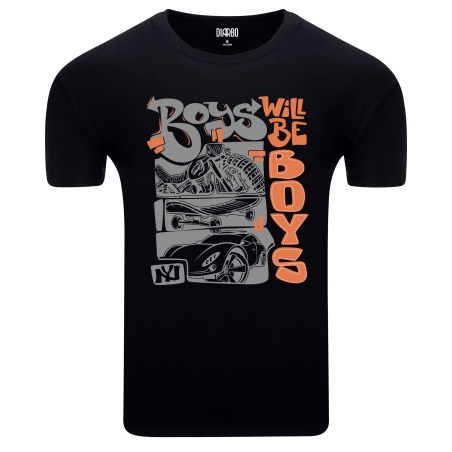 Ta koszulka to zabawne nawiązanie do męskich pasji i zamiłowań, idealna dla tych, którzy z uśmiechem podchodzą do stwierdzenia "Boys will be boys". Prezentuje unikalny design z motywami typowymi dla "chłopięcych zabawek": motocykla, deskorolki i sportowego samochodu, a całość wieńczy hasło "Boys will be Boys". Grafika utrzymana jest w dynamicznym, nieco graffiti-stylem, z wyrazistymi kolorami i ciekawą typografią, co nadaje koszulce nowoczesny i swobodny wygląd. To idealny wybór dla każdego, kto ceni sobie humor i pasję do motoryzacji oraz sportów ekstremalnych.