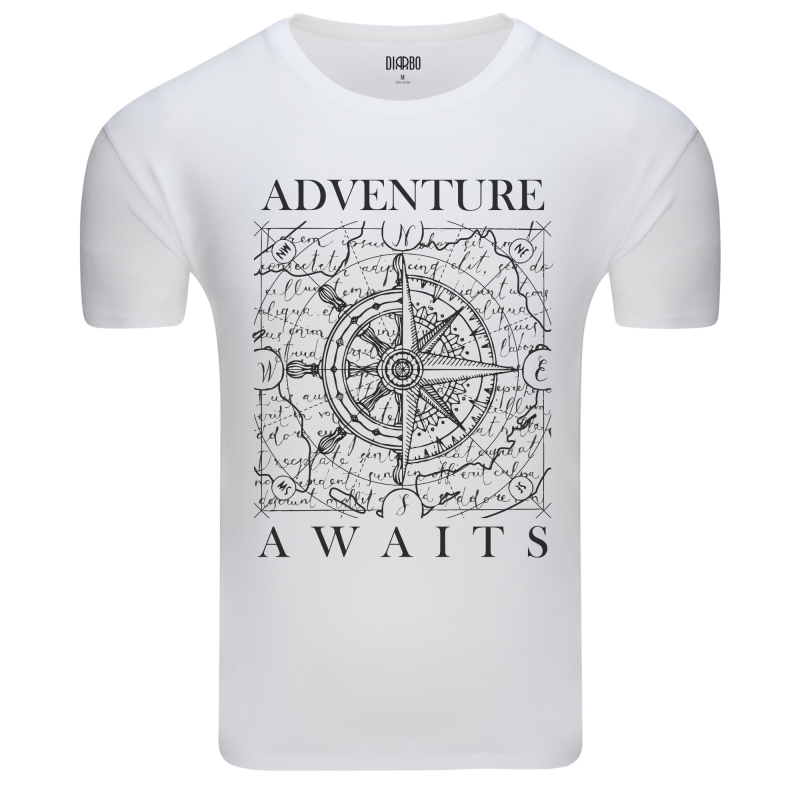 Wyrusz w podróż ku nieznanemu z tą koszulką, która idealnie oddaje ducha przygody i eksploracji! Centralny motyw to stylizowany kompas i fragmenty starej mapy, otoczone inspirującym napisem "ADVENTURE AWAITS". Całość wzoru jest prosta, ale wyrazista, i od razu kojarzy się z wolnością, odkrywaniem nowych miejsc i pasją do podróży. To idealny wybór dla miłośników żeglarstwa, podróżników, a także dla tych, którzy cenią sobie motywy związane z ruchem i wolnością.