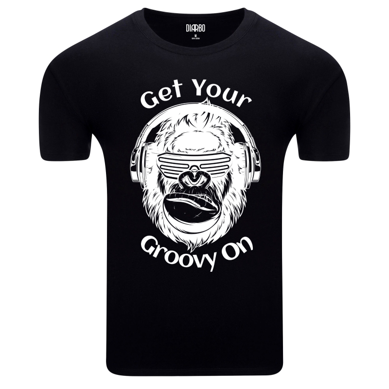Ta koszulka to prawdziwy hit dla każdego, kto ceni sobie luz, dobry humor i odrobinę dzikiego stylu! Prezentuje wizerunek wyluzowanej goryla w modnych okularach przeciwsłonecznych i słuchawkach, co od razu przywołuje skojarzenia z pozytywną energią i muzyką. Napis "Get Your Groovy On" doskonale oddaje nastrój, zachęcając do zabawy i swobody. To idealny wybór dla osób, które lubią wyrażać swoją osobowość z przymrużeniem oka i nie boją się wyróżniać z tłumu.