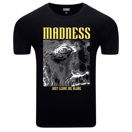 Ta koszulka to intrygująca propozycja dla tych, którzy cenią sobie głębokie przesłanie i artystyczne, nieco mroczne wzory. Centralnym punktem designu jest stylizowana grafika twarzy, wykonana z falujących linii, emanująca pewną dozą szaleństwa lub wewnętrznego zmagania. Nad nią widnieje napis "MADNESS" w wyraźnej, żółtej czcionce, a poniżej subtelny dopisek "JUST LEAVE ME ALONE". To idealny wybór dla osób, które lubią wyrażać swoją złożoną osobowość i cenią sobie swobodę bycia sobą.