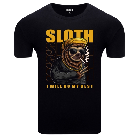 Ta koszulka to zabawna i nieco przewrotna propozycja dla tych, którzy cenią sobie humor i niekonwencjonalne podejście do życia. Centralnym punktem designu jest leniwiec w "gangsterskim" stylu – z łańcuchem, okularami przeciwsłonecznymi i papierosem, a nad nim i pod nim widnieje napis "SLOTH" oraz "I WILL DO MY BEST". To idealny wybór dla osób z dużym poczuciem humoru, które z dystansem podchodzą do swoich codziennych obowiązków.