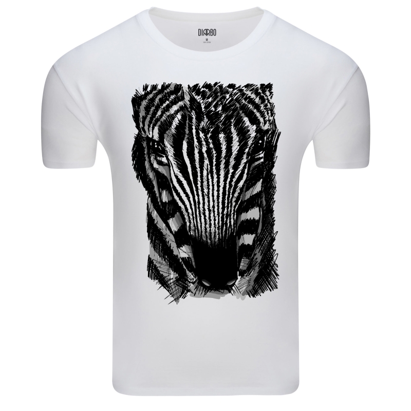 Ta koszulka to idealna propozycja dla tych, którzy cenią sobie klasyczną elegancję i wyrazisty styl. Centralnym punktem designu jest realistyczny portret zebry, przedstawiony w szkicowym stylu, który z wdziękiem oddaje jej charakterystyczne pasy. To oryginalne połączenie naturalnego piękna z artystyczną kreską nadaje koszulce unikalny charakter, który z pewnością wyróżni Cię z tłumu, niezależnie od tego, czy jesteś miłośnikiem przyrody, czy po prostu lubisz niebanalne, stylowe motywy.